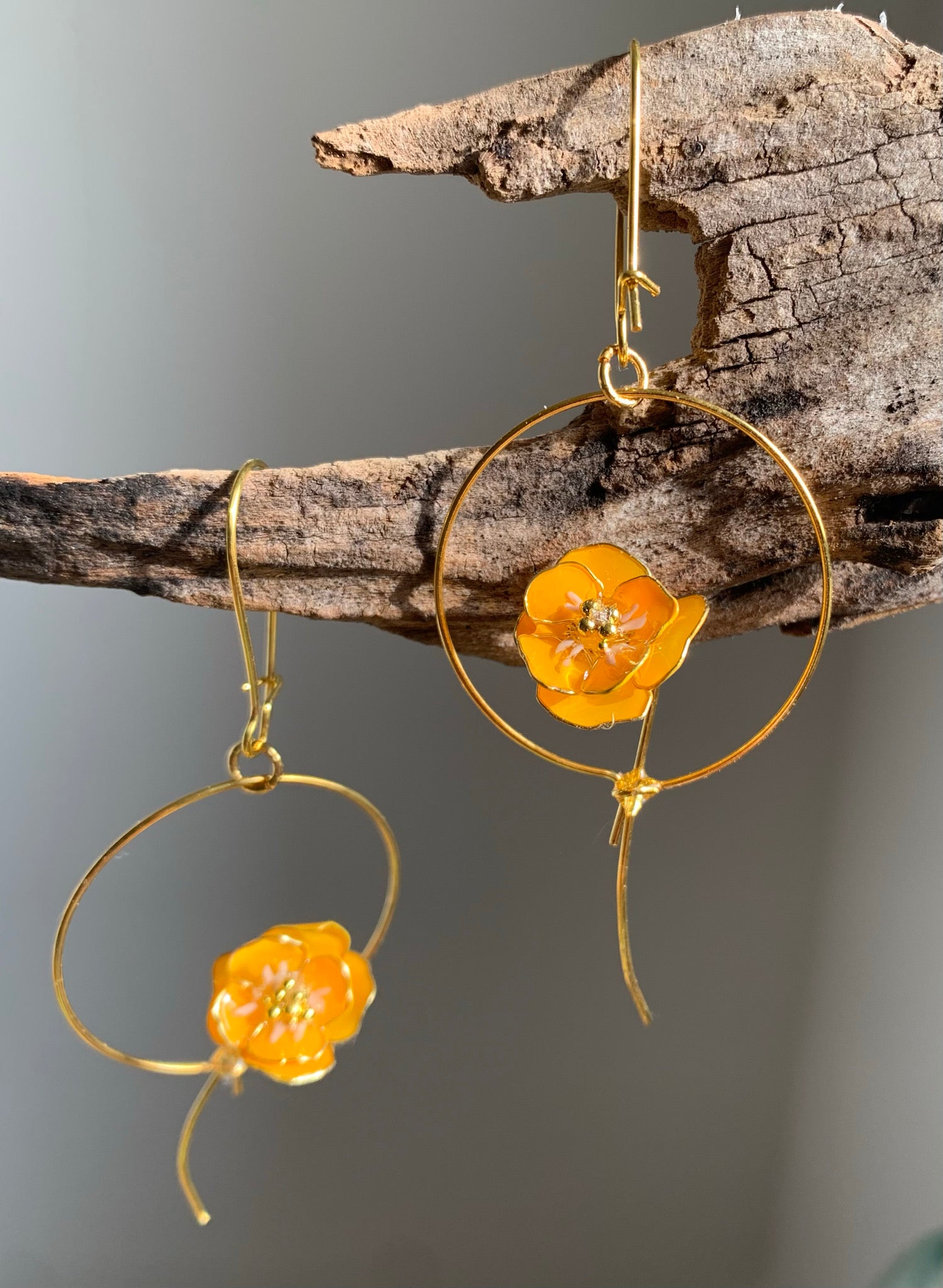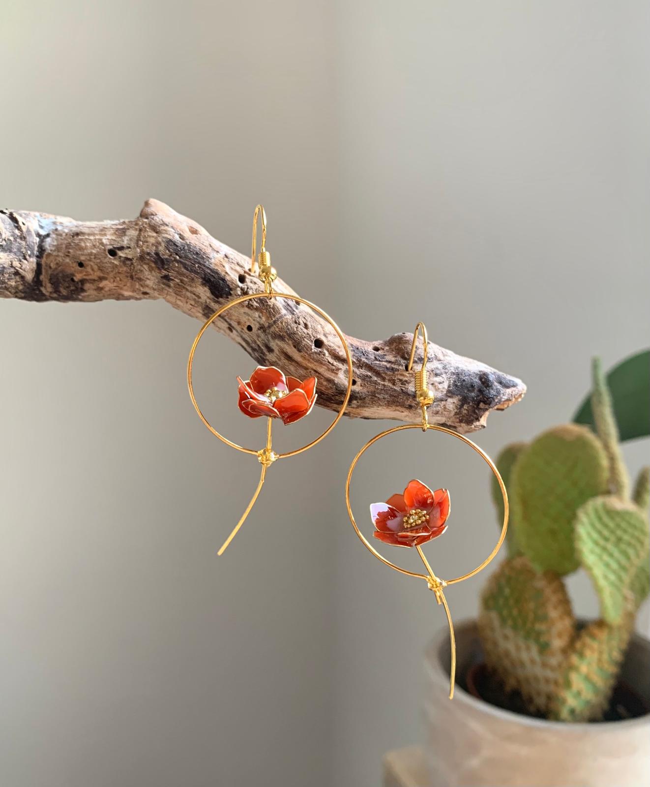 Handgemachte Ohrringe aus Draht und farbigem Epoxidharz. In verschiedenen Farben erhältlich