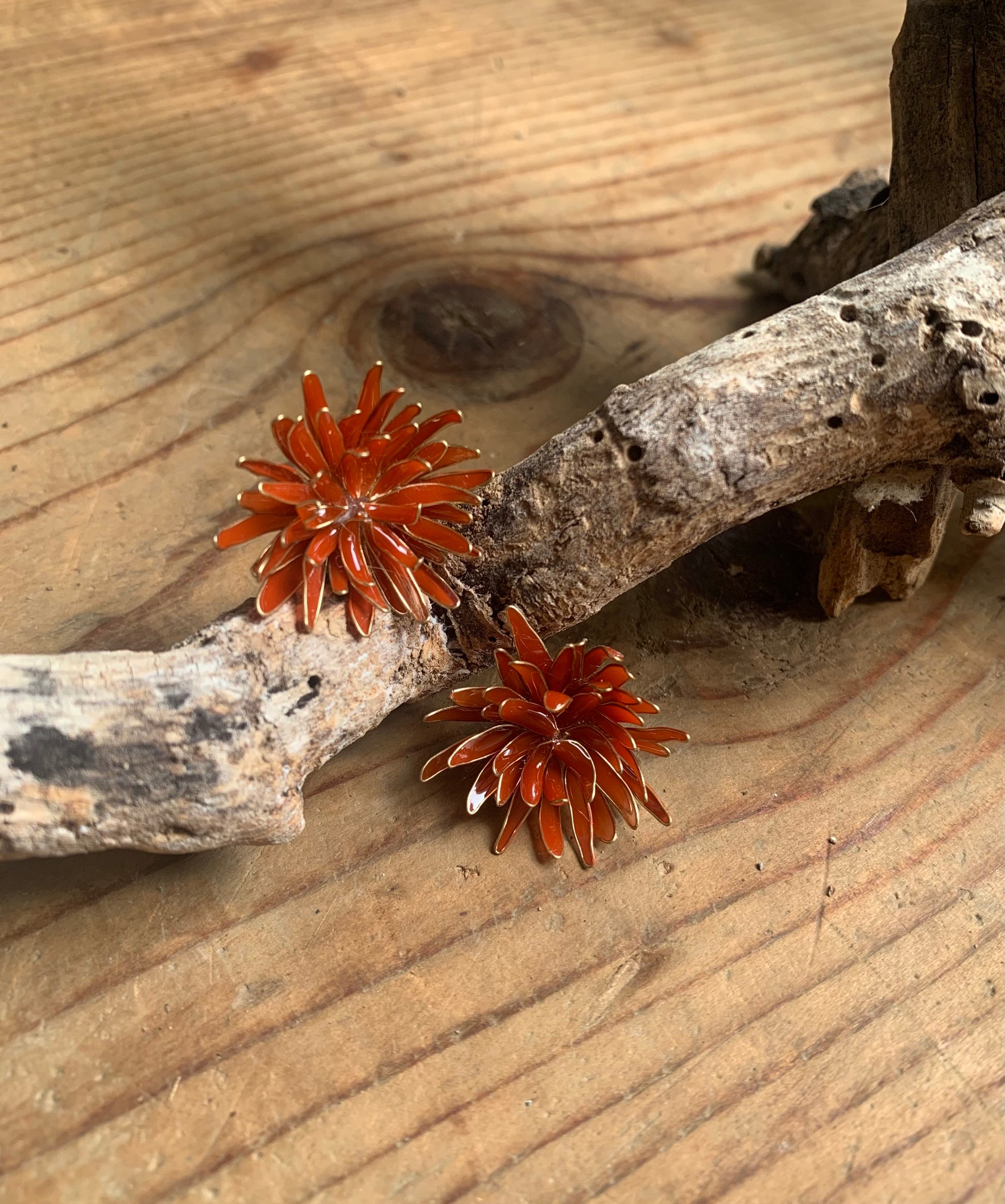 Ohrring, Chrysantheme. Eine auffällige, knallige Ausstrahlung.