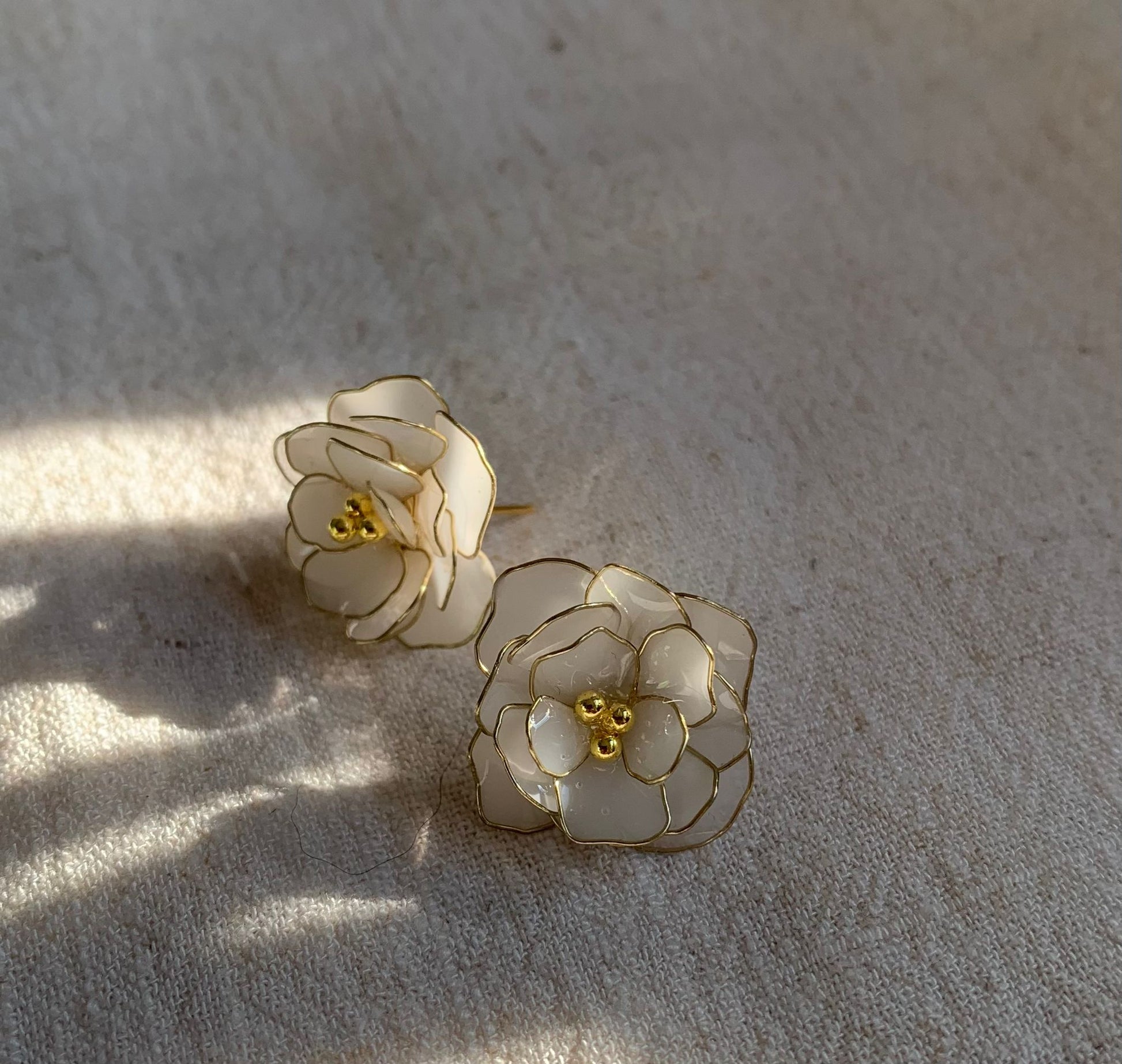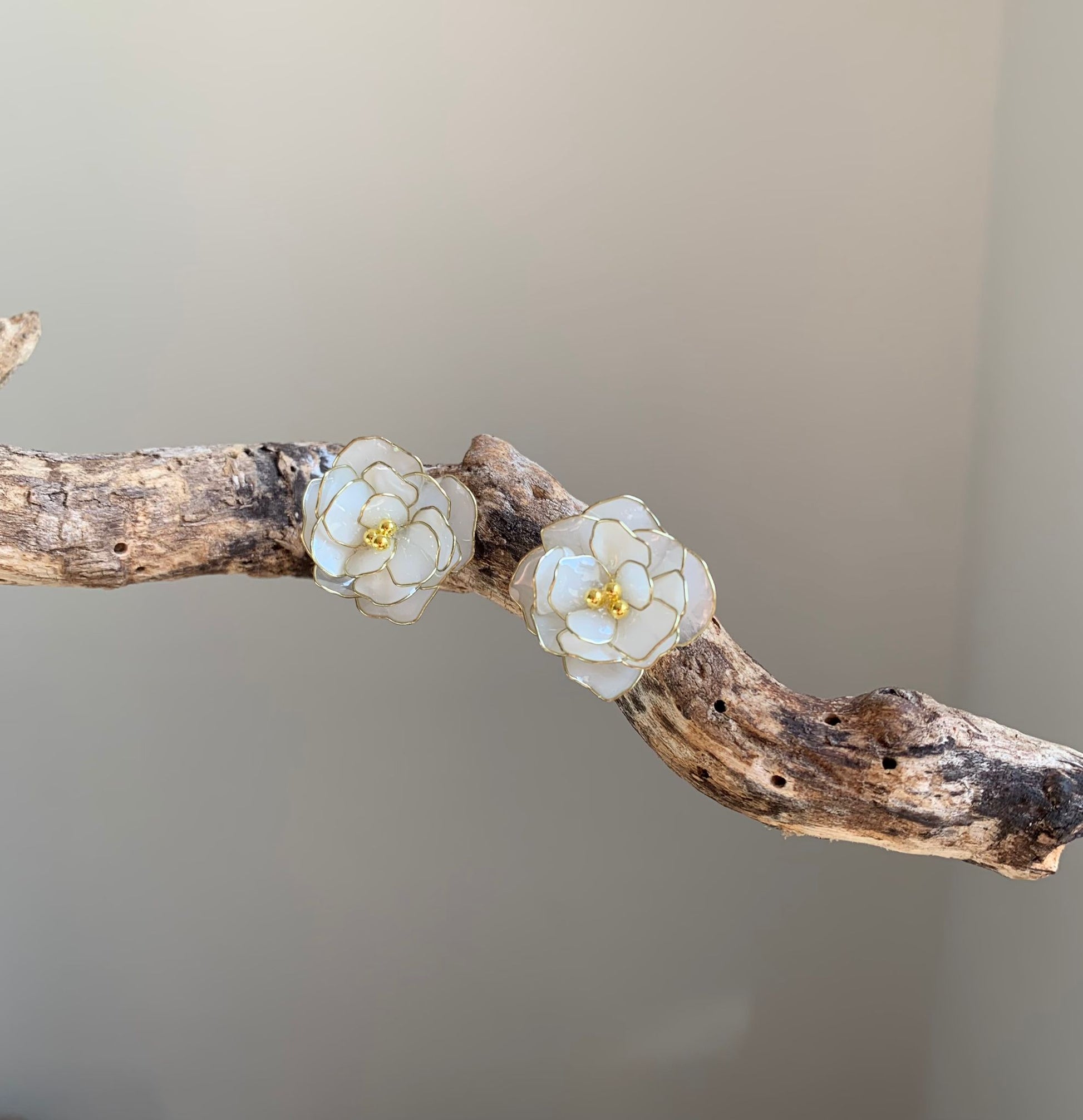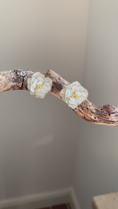 Diese weißen Rosenohrringe vereinen zarte Eleganz und zeitlose Schönheit, ein Hauch von Natur, der Ihre Anmut stilvoll unterstreicht.